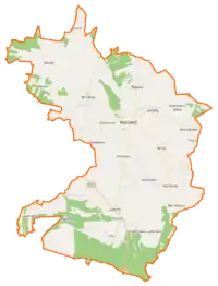 La gmina couvre une superficie de 154,54 km2 pour une population de 7 369 habitants en 2011.