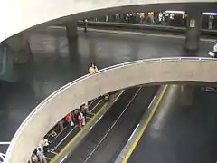 Les deux lignes se croisent à des profondeurs différentes, les stations L1 et L4 sont l'une au-dessus de l'autre avec la même configuration d'un quai central encadré par les deux voies de la ligne, le tout encadré par deux quais latéraux[2].
