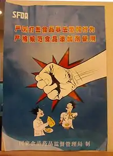 À partir des années 2000, il a tenté de consolider les lois sur l’alimentation avec la création en 2003 de l'Administration d'État des aliments et des médicaments (SFDA), transformée en 2013 en Administration des aliments et des médicaments de Chine (en) (CFDA) ; les officiels ont été soumis à une pression publique et internationale croissante pour résoudre des problèmes récurrents de sécurité sanitaire des aliments (notamment la question de l'huile d'égout et le scandale du lait frelaté en 2008).