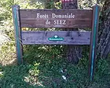 - Forêt domaniale R.T.M de SEEZ, 45 p. (lire en ligne), « 0.1. Désignation et situation de la forêt », p. 6.