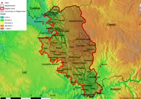 - Massif de Cardaillac (650 m) : Cardaillac, Ste- Colombe, Labathude, St-Maurice, St-Bressou, Espeyroux, Leyme, Molières, Montet-et- Bouxal.