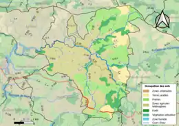 L'occupation des sols de la commune, telle qu'elle ressort de la base de données européenne d’occupation biophysique des sols Corine Land Cover (CLC), est marquée par l'importance des territoires agricoles (89,1 % en 2018), une proportion sensiblement équivalente à celle de 1990 (89 %). La répartition détaillée en 2018 est la suivante : zones agricoles hétérogènes (48,3 %), prairies (31,4 %), forêts (10 %), terres arables (9,4 %), zones urbanisées (0,4 %), milieux à végétation arbustive et/ou herbacée (0,4 %), eaux continentales (0,1 %)[30].