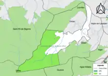 Par ailleurs la commune fait partie de l'aire d'attraction de Lourdes, dont elle est une commune de la couronne[Note 6]. Cette aire, qui regroupe 45 communes, est catégorisée dans les aires de moins de 50 000 habitants[I 3],[I 4].