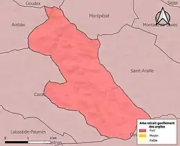 Le retrait-gonflement des sols argileux est susceptible d'engendrer des dommages importants aux bâtiments en cas d’alternance de périodes de sécheresse et de pluie. La totalité de la commune est en aléa moyen ou fort (88,8 % au niveau départemental et 48,5 % au niveau national). Sur les 51 bâtiments dénombrés sur la commune en 2019, 51 sont en aléa moyen ou fort, soit 100 %, à comparer aux 98 % au niveau départemental et 54 % au niveau national. Une cartographie de l'exposition du territoire national au retrait gonflement des sols argileux est disponible sur le site du BRGM[25],[Carte 3].