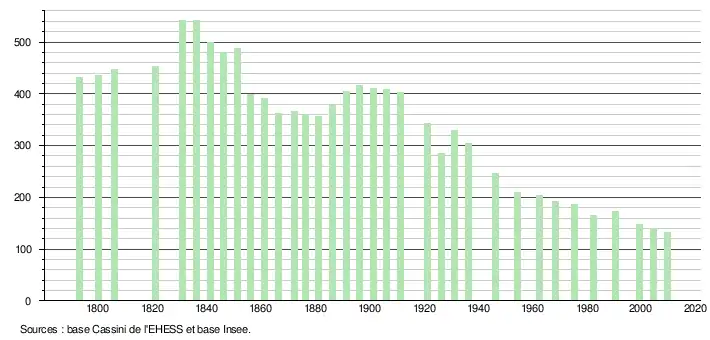 (Sources : Ldh/EHESS/Cassini jusqu'en 1999[3] puis Insee à partir de 2006[4].)