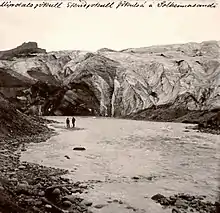 Vue du front glaciaire du Sólheimajökull en 1910.
