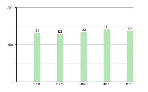 En 2021, le village de Słabomierz comptait 137 habitants, en augmentation de 4,58 % par rapport à 1998[6]. En 2021, 56,2 % des habitants du village de Słabomierz étaient en âge de travailler (entre 18 et 64 ans pour les hommes et 18 et 59 ans pour les femmes). 24,1 % des habitants avaient moins de 18 ans et 19,7 % avaient l'âge légal de la retraite. Les personnes en âge de travailler représentaient 59,5 % de la population de la voïvodie de Couïavie-Poméranie et 59,5 % de la population de Pologne. Ainsi, le taux de dépendance démographique du village de Słabomierz est supérieur à celui de la voïvodie de Couïavie-Poméranie et supérieur à celui de la Pologne[7].