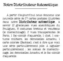 Sur l'une de ces cartes postales, on peut lire : « Dans la ville de Nantes, vous avez remarqué deux vieilles filles assez comiques, traversant les rues, parcourant les quartiers, jouant de la musique, elles font un vilain tintamarre, s'accompagnant de leur guitare et par pitié on donne un sou, pour les demoiselles Amadou. »[6]