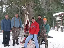 - Pour obtenir de beaux trophées, les chasseurs offrent aux cervidés des compléments minéraux, souvent sous forme de pierre à lécher (sels minéraux) que, localement, tous les cerfs lèchent régulièrement (au risque de se transmettre des microbes)[16].