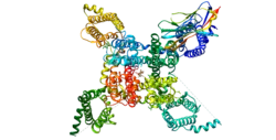 Le canal sodique des vertébrés est un canal ionique dépendant du voltage, qui est essentiel pour la génération et la propagation des potentiels d'action, principalement dans les nerfs et les muscles. Les canaux sodiques dépendant du voltage sont des complexes hétéromères constitués d'une grande sous-unité alpha glycosylée centrale formant le pore à travers lequel passent les ions sodium et de 2 sous-unités bêta auxiliaires plus petites. Des études fonctionnelles ont indiqué que la sous-unité alpha transmembranaire des canaux sodiques est suffisante pour l'expression des canaux sodiques fonctionnels[13]. Les sous-unités alpha du canal sodique du système nerveux central forment une sous-famille de gènes avec plusieurs isoformes structurellement distinctes regroupées sur le chromosome 2q24, types I, II (Nav1.2) et III (Nav1.3). Il existe également plusieurs isoformes distinctes de la sous-unité alpha du canal sodique dans le muscle squelettique et cardiaque ( Nav1.4 [14] et Nav1.5[15], respectivement).