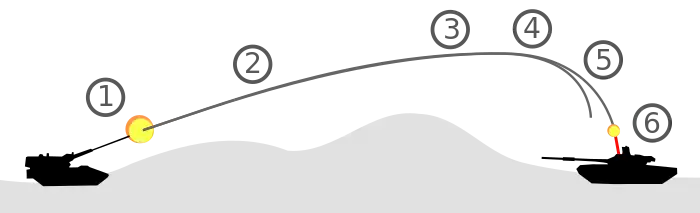 | 2 | L'obus vole sur un arc balistique, avec une portée de 27,5 kilomètres (17,1 mi)[3] | |