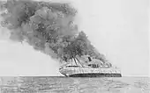 Après son départ pour son voyage inaugural, le navire a pris feu vers 5 h 30 le 12 octobre 1922 à la position 31°07′N 131°40′W, à 670 milles (1 078,26 km) de Los Angeles. Le capitaine a ordonné à tout le monde de se rendre sur les canots de sauvetage après qu'il est devenu évident que l'incendie ne pouvait être maîtrisé. Aucun des passagers ou de l'équipage n'a été tué ou gravement blessé pendant les tentatives de lutte contre l'incendie ou lors de l'évacuation ordonnée du paquebot[6]. Les passagers ont été secourus par le cargo West Faralon, le premier navire sur les lieux, mais transférés au navire de transport Thomas de l'armée américaine pour le retour à Los Angeles[7].