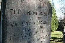 En 1906, le Valencia fait naufrage au large du cap Beale, près de Clo-oose, sur la côte Ouest de l'île de Vancouver en Colombie-Britannique. Une centaine de personnes y trouvent la mort, un chiffre important qu'il le classe comme l'une des pires catastrophes maritimes du « Cimetière du Pacifique ».
