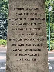 La Saône a joué le rôle de frontière naturelle par le passé. Notamment, son franchissement par les Helvètes en -58 marque l'un des éléments déclencheurs de la Guerre des Gaules. À Chalon-sur-Saône, deux épaves de l'époque romaine ont été découvertes[7].