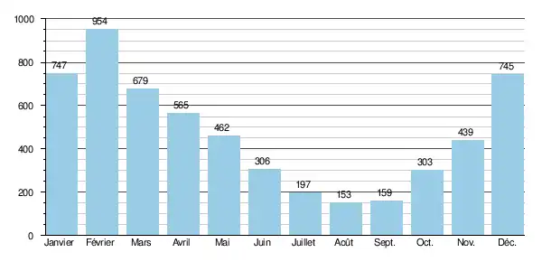 Le débit instantané maximal enregistré a été de 930 m3/s le .