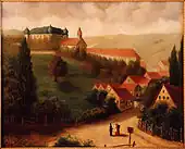 Vue de Waltershausen, huile sur toile attribuée à Caroline von Bibra zu Brennhausen (1835-1915).