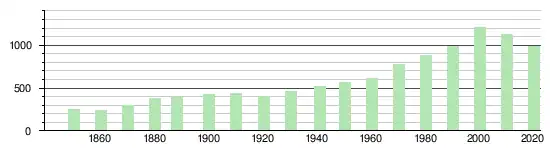 Évolution de la population de Saas-Grund entre 1850 et 2020[5],[1]