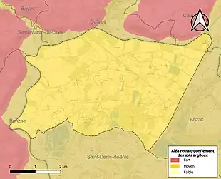Le retrait-gonflement des sols argileux est susceptible d'engendrer des dommages importants aux bâtiments en cas d’alternance de périodes de sécheresse et de pluie. La totalité de la commune est en aléa moyen ou fort (67,4 % au niveau départemental et 48,5 % au niveau national). Sur les 569 bâtiments dénombrés sur la commune en 2019, 569 sont en aléa moyen ou fort, soit 100 %, à comparer aux 84 % au niveau départemental et 54 % au niveau national. Une cartographie de l'exposition du territoire national au retrait gonflement des sols argileux est disponible sur le site du BRGM[18],[Carte 2].