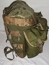 Le concept s'étend à la vie civile au début du XXe siècle, avec l'essor de certaines pratiques sportives de plein air, notamment l'alpinisme, le scoutisme et la randonnée pédestre (il s'agit alors d'un sac de cuir attaché à des cadres en bois, le cuir étant remplacé en 1909 par de la toile et le bois par du métal lorsqu'Ole F. Bergan dépose le modèle[2]). En France, c'est dans les années 1930 que Millet se fait connaître pour ses sacs à dos. Le , Lafuma dépose un brevet pour un modèle, dit « sac tyrolien », qui préfigurera les grandes lignes du sac à dos moderne. Dans les années 1950, l'Américain Dick Kelly propose une version en aluminium, plus léger, avec une sangle au niveau de la taille). Dans les années 1970, apparaissent les premières collections de sacs à dos pour la ville, sur le même principe que ceux réservés aux activités de plein air. Ils sont adoptés par les étudiants des universités aux États-Unis puis en France dans les années 1980 où il remplace peu à peu le traditionnel cartable en cuir des collégiens. Dans les années 2010, ils apparaissent dans les collections de certaines maisons de luxe, notamment chez le designer anglais Christopher Kane dans un modèle vintage ou chez Pierre Hardy (en forme de cube) et Jérôme Dreyfus (en cuir ou en toile avec des motifs animaliers)[2].