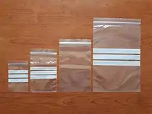 - (en) Cet article est partiellement ou en totalité issu des articles intitulés en anglais « Zipper storage bag » (voir la liste des auteurs) et « Ziploc » (voir la liste des auteurs).