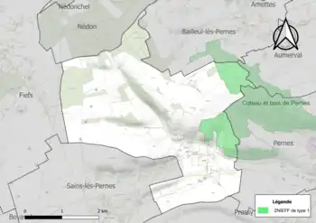Le territoire communal comprend une ZNIEFF de type 1[Note 1] : le coteau et le bois de Pernes, d’une superficie de 171 hectares et d'une altitude variant de 103 à 177 mètres. Ce site est un ancien lieu d’activité agropastorale du Béthunois lors du siècle précédent[9].