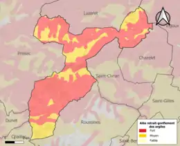 Le retrait-gonflement des sols argileux est susceptible d'engendrer des dommages importants aux bâtiments en cas d’alternance de périodes de sécheresse et de pluie. La totalité de la commune est en aléa moyen ou fort (84,7 % au niveau départemental et 48,5 % au niveau national). Sur les 291 bâtiments dénombrés sur la commune en 2019, 291 sont en aléa moyen ou fort, soit 100 %, à comparer aux 86 % au niveau départemental et 54 % au niveau national. Une cartographie de l'exposition du territoire national au retrait gonflement des sols argileux est disponible sur le site du BRGM[23],[24].