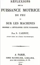 - Sadi Carnot, Réflexions sur la puissance motrice du feu et sur les machines propres à développer cette puissance, Paris, Bachelier, coll. « (Landmarks of science) », , 118 p. (OCLC 4758242, lire en ligne), 1953
