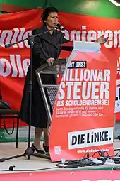 Sahra Wagenknecht [ˌzaːʁaː ˈvaːɡn̩ˌknɛçt][1], née le à Iéna, est une femme politique allemande, docteure en sciences économiques, députée au Bundestag et membre du parti Die Linke. Représentant une tendance de l'aile gauche de ce parti, elle en a été vice-présidente jusqu'en 2015, et co-préside son groupe parlementaire de 2015 à 2019.