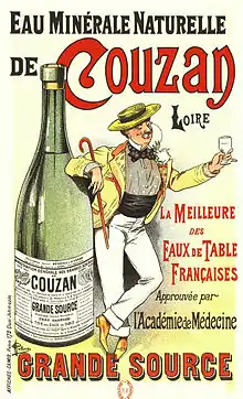 Les eaux minérales de Sail-sous-Couzan furent connues dès l'époque romaine (satio-aqua-saliens, l’eau jaillissante) mais l'érosion en amont a comblé la source. Cette source fut abandonnée au Moyen Âge. L’eau de Couzan-Brault fut retrouvée en 1612 par le médecin Forézien docteur de la Roue. Sail-sous-Couzan fut aussi une station thermale[23] où de nombreux curistes occupaient les hotels du village. Depuis cette date, les habitants du village ont la possibilité d' aller tirer de l'eau gazeuse pour leur consommation personnelle (qualité de l'eau contrôlée mensuellement par un laboratoire.
