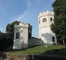 Veteran's Memorial Hall, autrefois la chapelle du site, a été conçu par le constructeur local James Solomon et édifié entre 1855 et 1856[35]. D'un point de vue stylistique, il s'agit d'un bâtiment « de transition », avec des éléments stylistiques principalement enracinés dans le style italianisant et certains éléments de Greek Revival[35]. La conception de la chapelle est basée sur celle d'une église typique de la Nouvelle-Angleterre[36] avec un toit à pignon. L'entrée principale se compose d'une tour avec un beffroi en saillie à l'avant de la chapelle. L'entrée mène à un vestibule aux murs en plâtre avec trois arcs en plein cintre. La façade en briques comporte six fenêtres en plein cintre de chaque côté, séparées par des pilastres. A l'arrière se trouve une extension d'un étage avec un bureau et une sacristie[25],[35]. Elle comporte des vitraux à l'intérieur[25],[36].