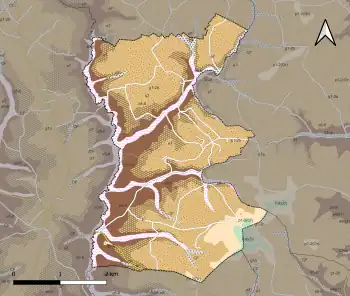 La superficie cadastrale de la commune publiée par l'Insee, qui sert de référence dans toutes les statistiques, est de 13,54 km2[5],[11],[Note 2]. La superficie géographique, issue de la BD Topo, composante du Référentiel à grande échelle produit par l'IGN, est également de 13,54 km2[3].