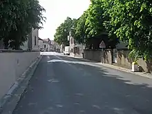 Vue de l'église depuis la route départementale 12 en direction d'Aigueperse. | |||||