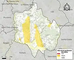 Le retrait-gonflement des sols argileux est susceptible d'engendrer des dommages importants aux bâtiments en cas d’alternance de périodes de sécheresse et de pluie. 17,7 % de la superficie communale est en aléa moyen ou fort (15,8 % au niveau départemental et 48,5 % au niveau national). Sur les 829 bâtiments dénombrés sur la commune en 2019, 407 sont en aléa moyen ou fort, soit 49 %, à comparer aux 14 % au niveau départemental et 54 % au niveau national. Une cartographie de l'exposition du territoire national au retrait gonflement des sols argileux est disponible sur le site du BRGM[20],[Carte 2].