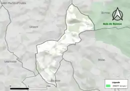 L’inventaire des zones naturelles d'intérêt écologique, faunistique et floristique (ZNIEFF) a pour objectif de réaliser une couverture des zones les plus intéressantes sur le plan écologique, essentiellement dans la perspective d’améliorer la connaissance du patrimoine naturel national et de fournir aux différents décideurs un outil d’aide à la prise en compte de l’environnement dans l’aménagement du territoire. Une ZNIEFF de type 1[Note 6] est recensée sur la commune[31] : le « bois de Bonnac » (779 ha), couvrant 5 communes du département[32].