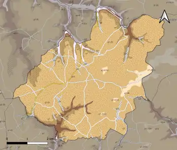 L'occupation des sols de la commune, telle qu'elle ressort de la base de données européenne d’occupation biophysique des sols Corine Land Cover (CLC), est marquée par l'importance des forêts et milieux semi-naturels (73,2 % en 2018), en augmentation par rapport à 1990 (67,9 %). La répartition détaillée en 2018 est la suivante : forêts (71,3 %), zones agricoles hétérogènes (24,5 %), milieux à végétation arbustive et/ou herbacée (1,9 %), terres arables (1,3 %), prairies (1,1 %)[35]. L'évolution de l’occupation des sols de la commune et de ses infrastructures peut être observée sur les différentes représentations cartographiques du territoire : la carte de Cassini (XVIIIe siècle), la carte d'état-major (1820-1866) et les cartes ou photos aériennes de l'IGN pour la période actuelle (1950 à aujourd'hui)[Carte 3].
