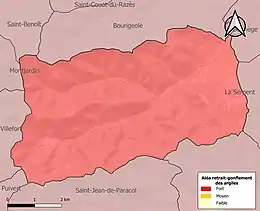 Le retrait-gonflement des sols argileux est susceptible d'engendrer des dommages importants aux bâtiments en cas d’alternance de périodes de sécheresse et de pluie. La totalité de la commune est en aléa moyen ou fort (75,2 % au niveau départemental et 48,5 % au niveau national). Sur les 129 bâtiments dénombrés sur la commune en 2019, 129 sont en aléa moyen ou fort, soit 100 %, à comparer aux 94 % au niveau départemental et 54 % au niveau national. Une cartographie de l'exposition du territoire national au retrait gonflement des sols argileux est disponible sur le site du BRGM[21],[Carte 3].