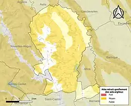 Le retrait-gonflement des sols argileux est susceptible d'engendrer des dommages importants aux bâtiments en cas d’alternance de périodes de sécheresse et de pluie[28]. 64,7 % de la superficie communale est en aléa moyen ou fort (59 % au niveau départemental et 48,5 % au niveau national)[Carte 3]. Depuis le , en application de la loi ELAN, différentes contraintes s'imposent aux vendeurs, maîtres d'ouvrages ou constructeurs de biens situés dans une zone classée en aléa moyen ou fort[Note 6],[29].