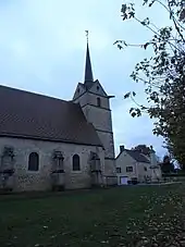La paroisse était dédiée à Aubin d'Angers, évêque d'Angers au VIe siècle.