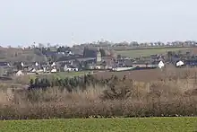 L'occupation des sols de la commune, telle qu'elle ressort de la base de données européenne d’occupation biophysique des sols Corine Land Cover (CLC), est marquée par l'importance des territoires agricoles (98,2 % en 2018), une proportion identique à celle de 1990 (98,1 %). La répartition détaillée en 2018 est la suivante : terres arables (49 %), prairies (38,1 %), zones agricoles hétérogènes (11,1 %), forêts (1,8 %)[16]. L'évolution de l’occupation des sols de la commune et de ses infrastructures peut être observée sur les différentes représentations cartographiques du territoire : la carte de Cassini (XVIIIe siècle), la carte d'état-major (1820-1866) et les cartes ou photos aériennes de l'IGN pour la période actuelle (1950 à aujourd'hui)[Carte 1].