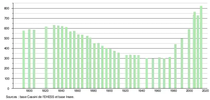 - Population municipale légale en vigueur au 1er janvier 2017, millésimée 2014, définie dans les limites territoriales en vigueur au 1er janvier 2016, date de référence statistique : 1er janvier 2014.
