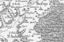 Pendant une courte période où les noms faisant référence à la religion étaient bannis, Saint-Aubin s’est appelé Le Marcat[15] du nom d’un hameau du bourg, tandis que Bessais-le-Monial est devenu Bessais le Libre ou Bessay le Libre[16] ; mais cette période très mouvementée est difficile à suivre car les implications locales des politiques nationales modifient sans cesse les dénominations, les compétences et les registres ainsi à titre d’exemple, les deux communes faisaient partie du canton d’Ygrande et du district de Cérilly.