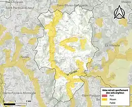 Le retrait-gonflement des sols argileux est susceptible d'engendrer des dommages importants aux bâtiments en cas d’alternance de périodes de sécheresse et de pluie. 24,8 % de la superficie communale est en aléa moyen ou fort (33,6 % au niveau départemental et 48,5 % au niveau national). Sur les 155 bâtiments dénombrés sur la commune en 2019, 42 sont en aléa moyen ou fort, soit 27 %, à comparer aux 25 % au niveau départemental et 54 % au niveau national. Une cartographie de l'exposition du territoire national au retrait gonflement des sols argileux est disponible sur le site du BRGM[16],[Carte 2].