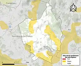 Le retrait-gonflement des sols argileux est susceptible d'engendrer des dommages importants aux bâtiments en cas d’alternance de périodes de sécheresse et de pluie. 23,3 % de la superficie communale est en aléa moyen ou fort (33,6 % au niveau départemental et 48,5 % au niveau national). Sur les 61 bâtiments dénombrés sur la commune en 2019, 9 sont en aléa moyen ou fort, soit 15 %, à comparer aux 25 % au niveau départemental et 54 % au niveau national. Une cartographie de l'exposition du territoire national au retrait gonflement des sols argileux est disponible sur le site du BRGM[16],[Carte 2].