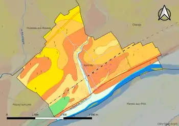 La superficie cadastrale de la commune publiée par l’Insee, qui sert de référence dans toutes les statistiques, est de 10,07 km2[12],[Note 1]. La superficie géographique, issue de la BD Topo, composante du Référentiel à grande échelle produit par l'IGN, est quant à elle de 10,33 km2[9]. Son relief est relativement plat puisque la dénivelée maximale atteint 26 mètres. L'altitude du territoire varie entre 82 m et 108 m[15].