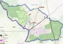 L'occupation des sols de la commune, telle qu'elle ressort de la base de données européenne d’occupation biophysique des sols Corine Land Cover (CLC), est marquée par l'importance des territoires agricoles (53,7 % en 2018), une proportion identique à celle de 1990 (53,8 %). La répartition détaillée en 2018 est la suivante : forêts (39,4 %), terres arables (34,8 %), prairies (15,9 %), zones industrielles ou commerciales et réseaux de communication (6,7 %), zones agricoles hétérogènes (3 %), eaux continentales[Note 3] (0,1 %)[17]. L'évolution de l’occupation des sols de la commune et de ses infrastructures peut être observée sur les différentes représentations cartographiques du territoire : la carte de Cassini (XVIIIe siècle), la carte d'état-major (1820-1866) et les cartes ou photos aériennes de l'IGN pour la période actuelle (1950 à aujourd'hui)[Carte 1].