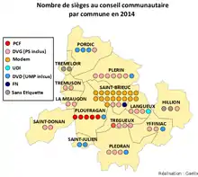 Le , le nombre de communes passe de 14 à 13 à la suite de l'intégration de Tréméloir au sein de Pordic[3].