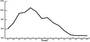 En 2010, la population franchissait le cap des 500 habitants, et atteignait 511 habitants au recensement de 2011, soit une augmentation de plus de 14 % entre 2006 et 2011[11]