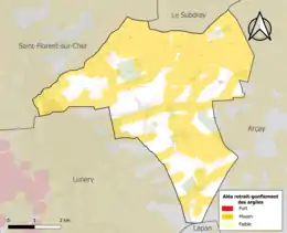 La commune est vulnérable au risque de mouvements de terrains constitué principalement du retrait-gonflement des sols argileux[16]. Cet aléa est susceptible d'engendrer des dommages importants aux bâtiments en cas d’alternance de périodes de sécheresse et de pluie. 67,4 % de la superficie communale est en aléa moyen ou fort (90 % au niveau départemental et 48,5 % au niveau national). Sur les 311 bâtiments dénombrés sur la commune en 2019, 181 sont en aléa moyen ou fort, soit 58 %, à comparer aux 83 % au niveau départemental et 54 % au niveau national. Une cartographie de l'exposition du territoire national au retrait gonflement des sols argileux est disponible sur le site du BRGM[17],[Carte 2].