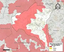 Les mouvements de terrains susceptibles de se produire sur la commune sont des tassements différentiels[36]. Le retrait-gonflement des sols argileux est susceptible d'engendrer des dommages importants aux bâtiments en cas d’alternance de périodes de sécheresse et de pluie[37]. 51,9 % de la superficie communale est en aléa moyen ou fort (58,6 % au niveau départemental et 48,5 % au niveau national métropolitain)[Carte 4]. Depuis le , en application de la loi ÉLAN, différentes contraintes s'imposent aux vendeurs, maîtres d'ouvrages ou constructeurs de biens situés dans une zone classée en aléa moyen ou fort[Note 5],[38].