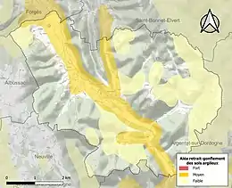 Le retrait-gonflement des sols argileux est susceptible d'engendrer des dommages importants aux bâtiments en cas d’alternance de périodes de sécheresse et de pluie. 21,3 % de la superficie communale est en aléa moyen ou fort (26,8 % au niveau départemental et 48,5 % au niveau national). Sur les 341 bâtiments dénombrés sur la commune en 2019, 250 sont en aléa moyen ou fort, soit 73 %, à comparer aux 36 % au niveau départemental et 54 % au niveau national. Une cartographie de l'exposition du territoire national au retrait gonflement des sols argileux est disponible sur le site du BRGM[18],[Carte 2].
